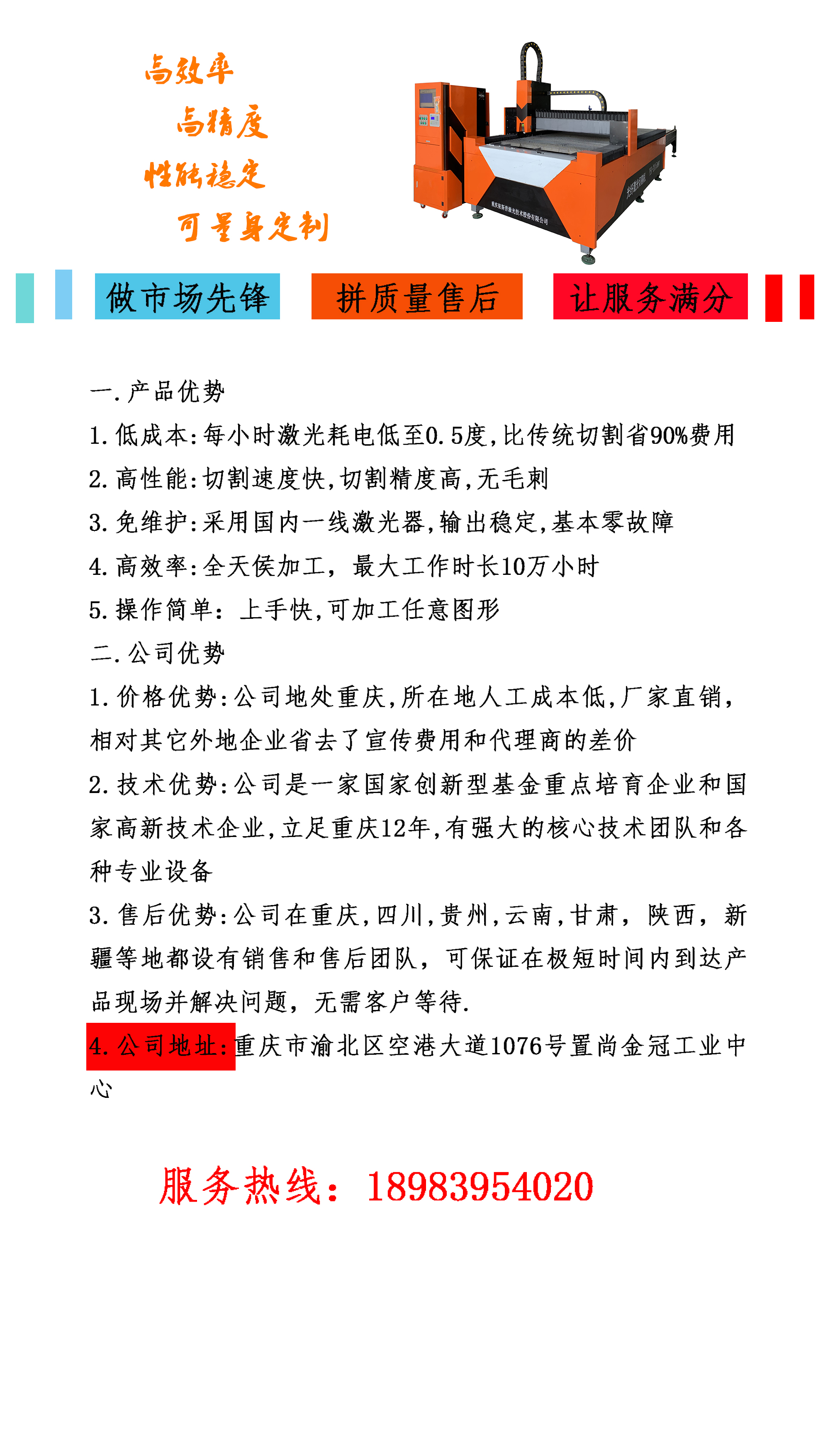 重慶依斯普激光技術(shù)股份有限公司 是一家科技型高新技術(shù)企業(yè),公司位于重慶市渝北區(qū)空港大道1076號置尚金冠工業(yè)中心,占地面積約五千平方米,吸收了國外的先進的技術(shù),專業(yè)研發(fā)、制造和銷售各類激光控制技術(shù)應用類產(chǎn)品。公司被評為創(chuàng)新基金重點培育企業(yè),專精特新企業(yè),通過了ISO9001質(zhì)量管理體系認證,產(chǎn)品多次獲得重慶市高新技術(shù)產(chǎn)品證書及實用新型專利證書等。 依斯普激光的主導產(chǎn)品為激光切割機系列、激光焊接機系列,激光打標機及氣動打標機系列等,廣泛應用在